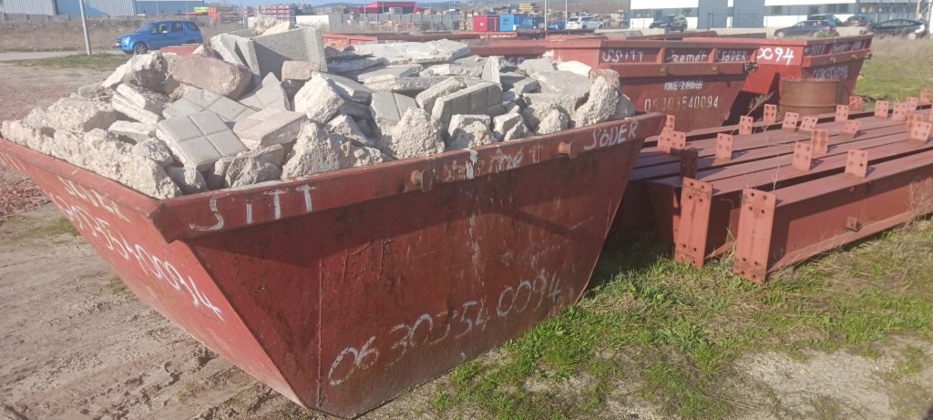 • Zsákos sitt, építési és bontási hulladék, beleértve a betont, téglát, cserépet, kerámiát, ytongot, vakolatot, csempét, földet és köveket, valamint ajtókat, ablakokat, mosdókat, wc-ket, tapétákat, vaskádakat és műanyagkádakat.